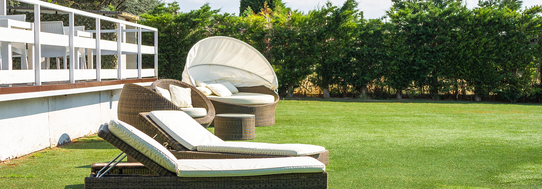 Accanto alla piscina e su un prato dal verde smeraldo è stata realizzata un'area solarium arricchita da comodissimi lettino/sdraio. Il sole a scaldarvi la pelle, l'aria della premurgia pugliese a rinfrescarvi lo spirito, il maestoso maniero a proteggere i vostri pensieri.